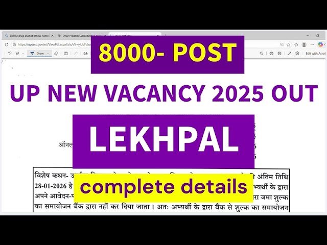 यूपी लेखपाल भर्ती 2025: 12वीं पास के लिए 7994 पदों पर बंपर वैकेंसी, जानें आवेदन प्रक्रिया और आखिरी तारीख