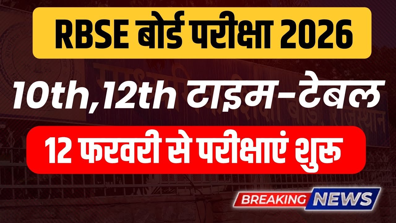 राजस्थान बोर्ड ने 2026 की परीक्षाओं को लेकर पूरा शेड्यूल तैयार कर लिया है। हर साल परीक्षाएं मार्च–अप्रैल में होती थीं, लेकिन इस बार बोर्ड ने टाइम टेबल एक महीने पहले जारी किया है और परीक्षाएं भी फरवरी में ही समाप्त होंगी।